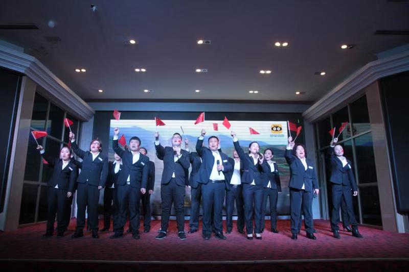 晚會最后,潔霸公司總經(jīng)理程晉軍和各單位、部門負責人共同唱響“大中國”。