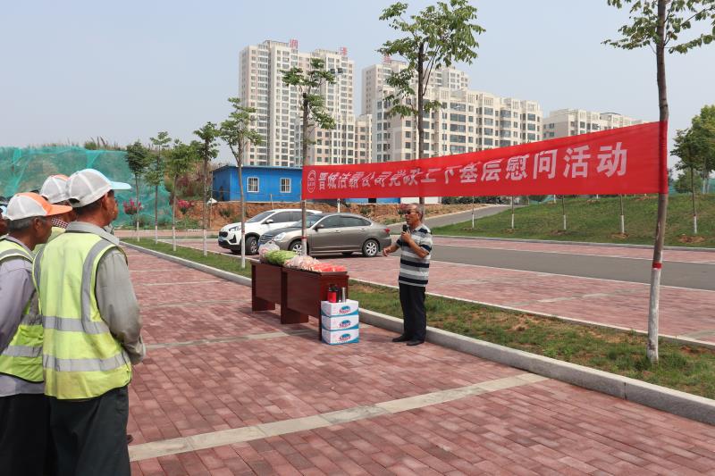 帶狀公園位于晉城市東南新區(qū),目前有我公司員工52人,分保安、保潔和綠化養(yǎng)護(hù)三個(gè)隊(duì)組。車一到公園,慰問(wèn)小組工作人員就打開(kāi)音響放起歌來(lái),一下就把員工從緊張勞累的工作狀態(tài)帶入輕松的氛圍。一聲“大家辛苦了”,工作人員向公園員工致以親切的問(wèn)候,把黨政工領(lǐng)導(dǎo)的關(guān)懷送到了員工的心坎上。