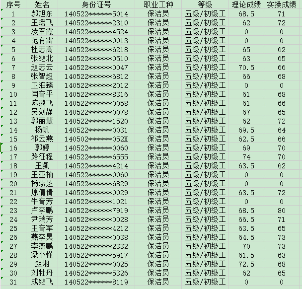 晉城市潔霸清潔服務股份有限公司職業(yè)技能等級認定中心現將2024年8月24日認定人員成績公示如下: