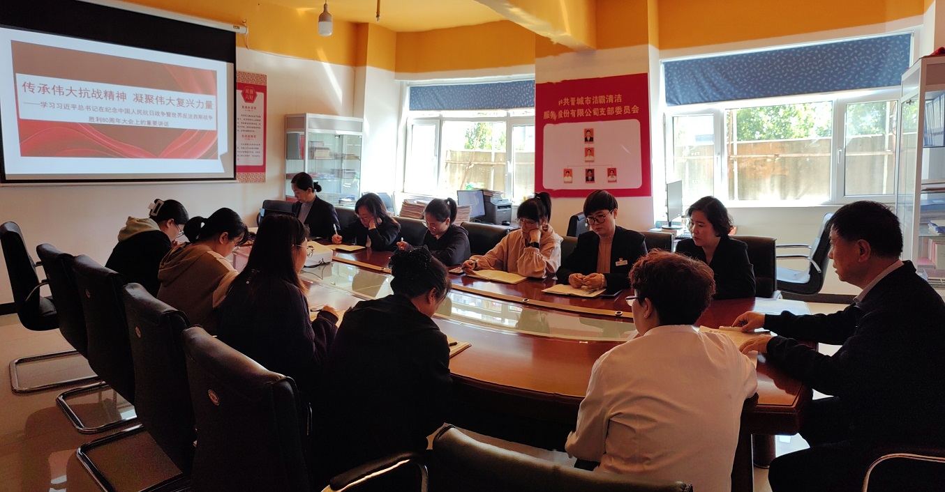 為紀念中國人民抗日戰(zhàn)爭暨世界反法西斯戰(zhàn)爭勝利80周年,弘揚偉大抗戰(zhàn)精神,9月20日,集團黨支部組織開展學(xué)習(xí)習(xí)近平總書記在紀念中國人民抗日戰(zhàn)爭暨世界反法西斯戰(zhàn)爭勝利80周年大會上的重要講話專題黨課活動。支部書記程晉軍主講,支部黨員和入黨積極分子17人參加本次學(xué)習(xí)活動。